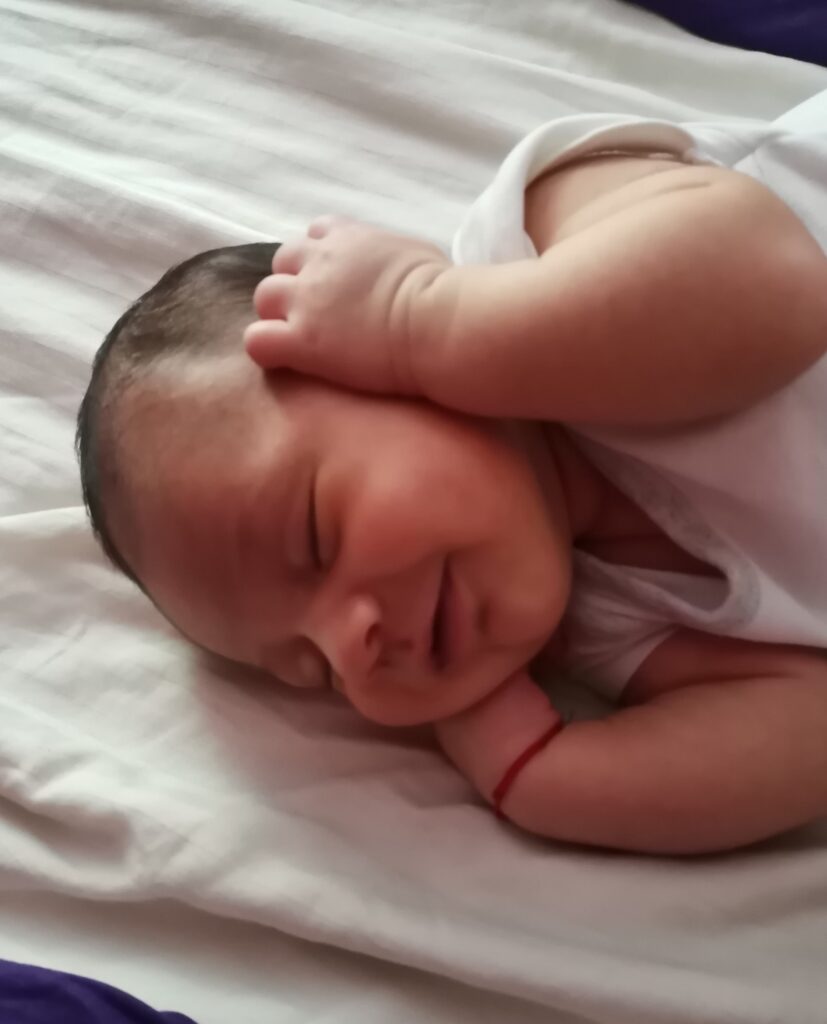 La final, ca am lungit-o destul, a venit medicul și m-a verificat, le-a zis ceva moașelor, eu sincer nu mai auzeam oricum, începusem sa simt ca trebuie sa împing. Mi-au pus picioarele pe mânere, moment în care am urlat de durere și cred ca am împins iar una din moase a început sa tipe la mine ca să nu mai tip. Ea încerca să îmi explice ce trebuie sa fac pe expulzie iar eu efectiv nu reuseam sa o aud și sa ma concentrez din cauza durerilor. A țipat din nou la mine, moment în care am rugat-o sa fie mai blândă cu mine ca nu pot sa o urmăresc. Am avut sentimentul de a o lua de mana, nu știu dacă am și întins mana spre ea, cred ca îmi doream eu sa fie cineva acolo cât de cât empatic.. Iar ea s-a uitat cu scârbă la mine și s-a retras. Este un gest și o privire pe care atunci credeam ca nu o sa le uit dar azi le-am uitat… Am auzit pana la urma ce mi-a zis sa fac și din 5-6 contractii Amza a și ieșit cu circulara de cordon, cu 3,600 kg la ora 12:45. La internare fusese estimat ecografic la 3,050 kg.